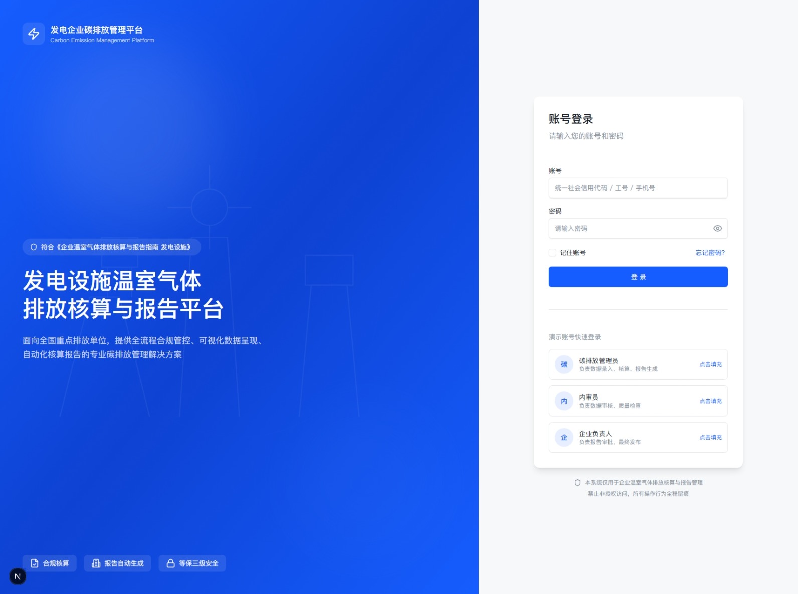 专为发电行业重点排放单位打造的标准化温室气体排放核算与报告系统。