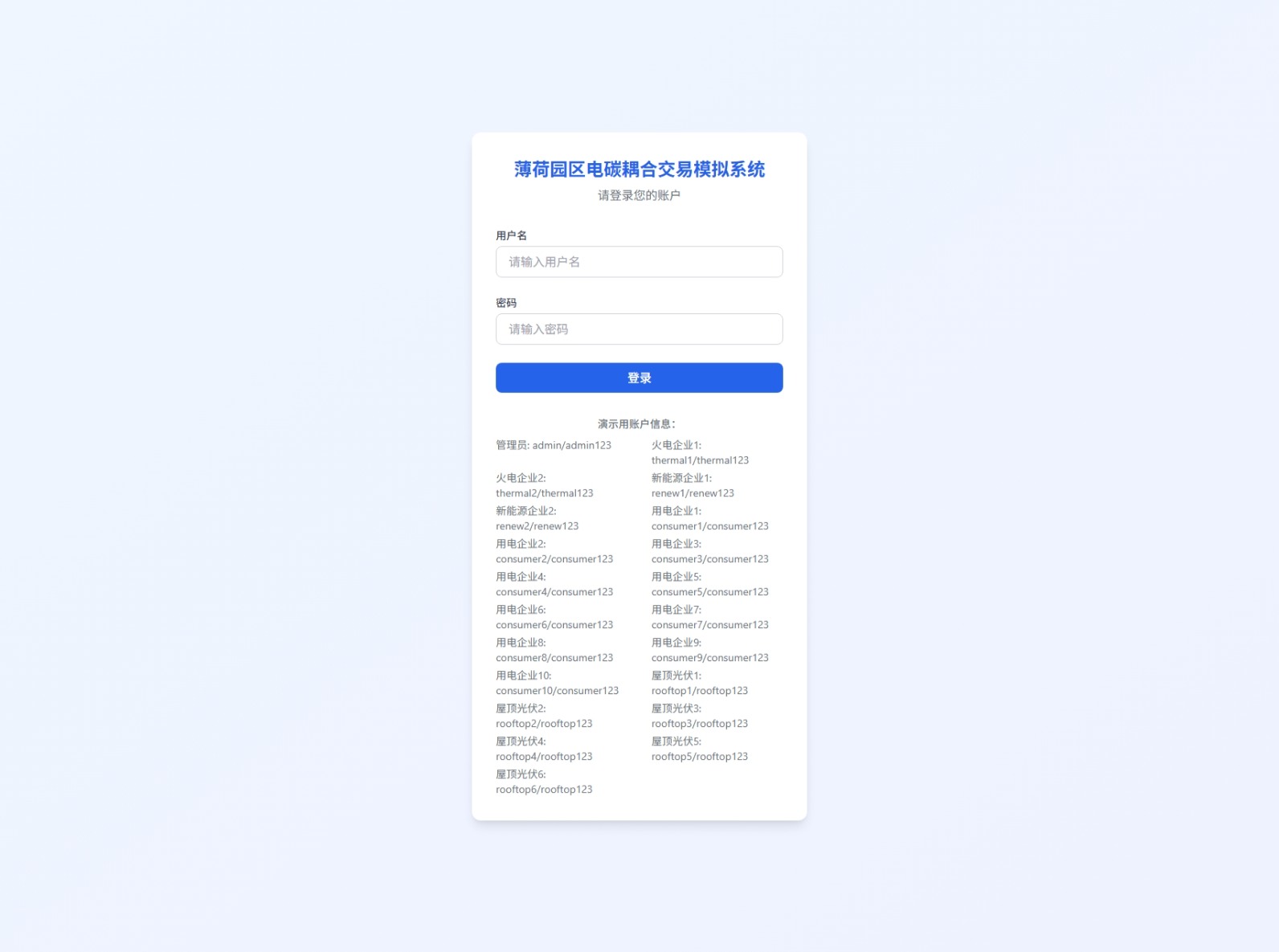 面向工业园区的电力与碳排放耦合交易仿真平台,支持多市场主体协同交易模拟。