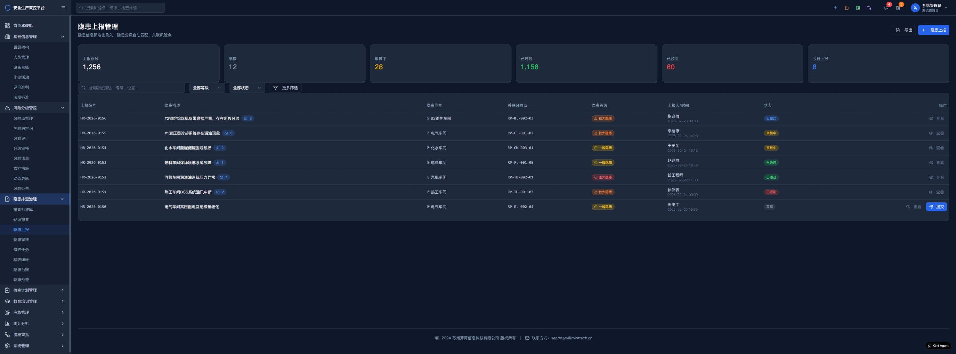 火电企业安全生产风险分级管控和隐患排查治理双控管理平台