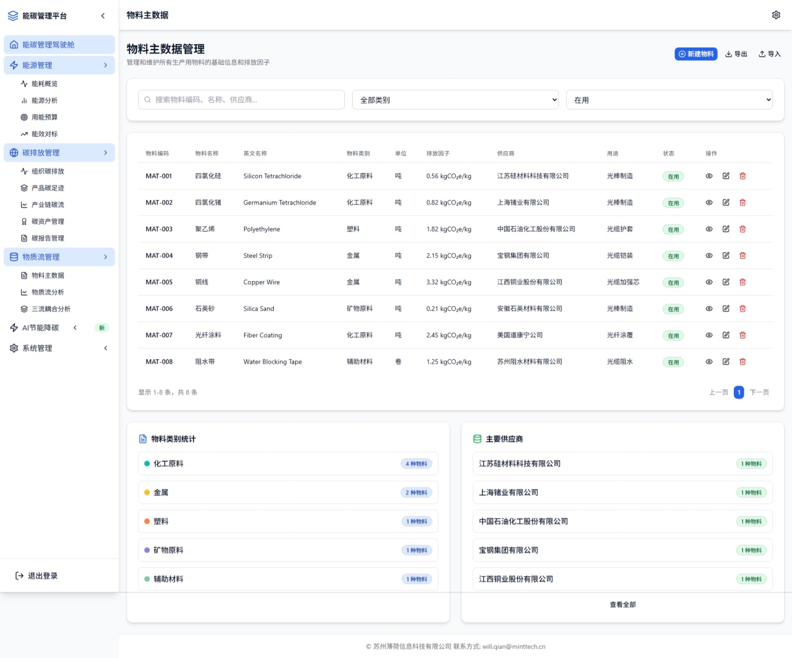光纤光缆全产业链能碳管理平台
