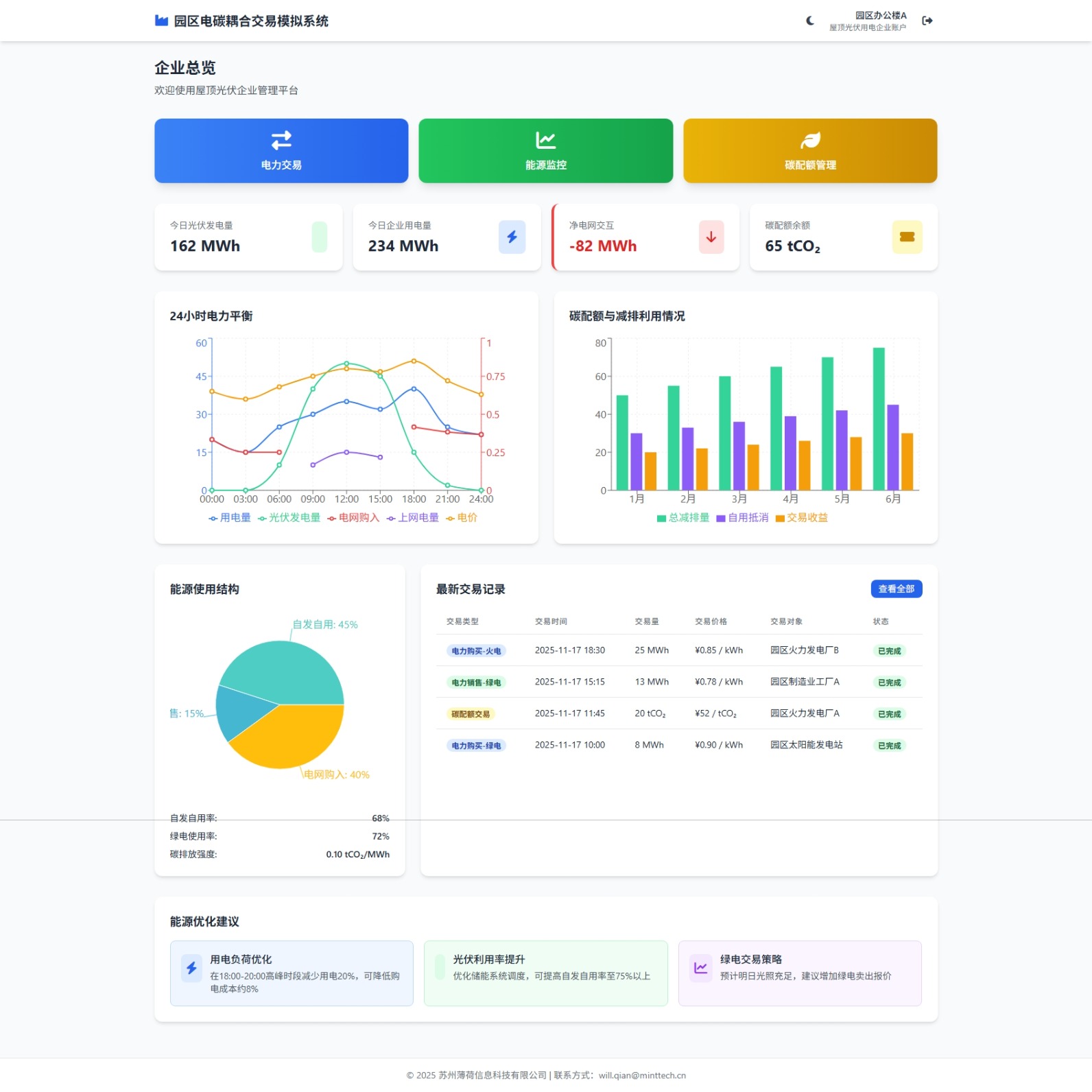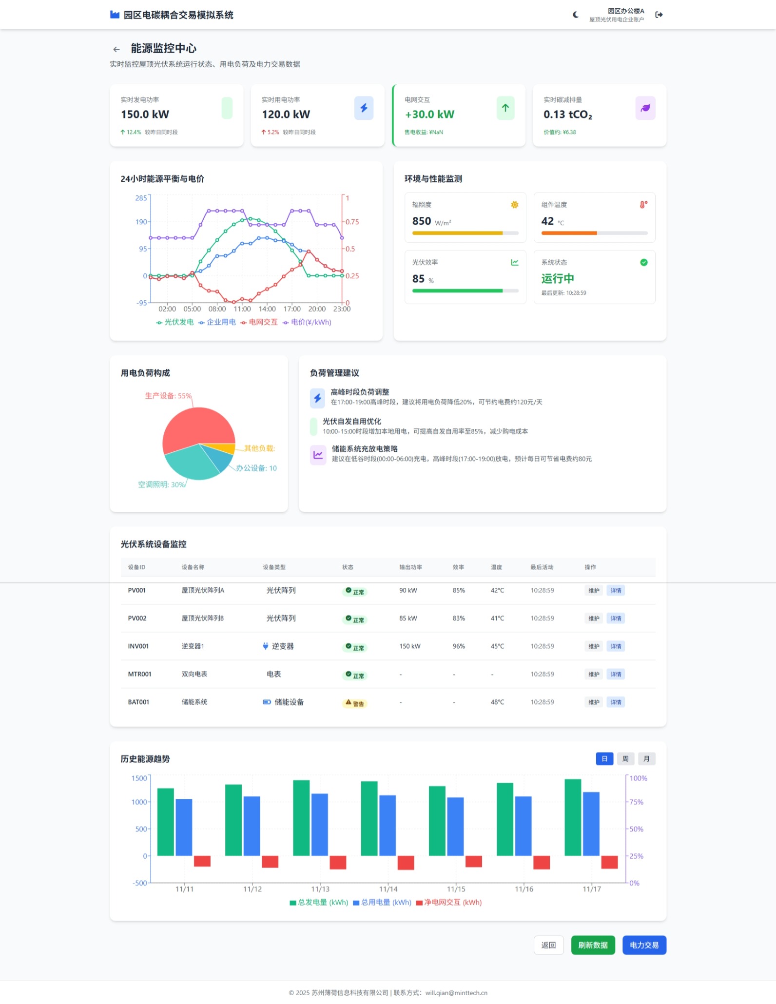 实时监控光伏发电、用电负荷、电网交互,提供负荷优化建议与储能策略