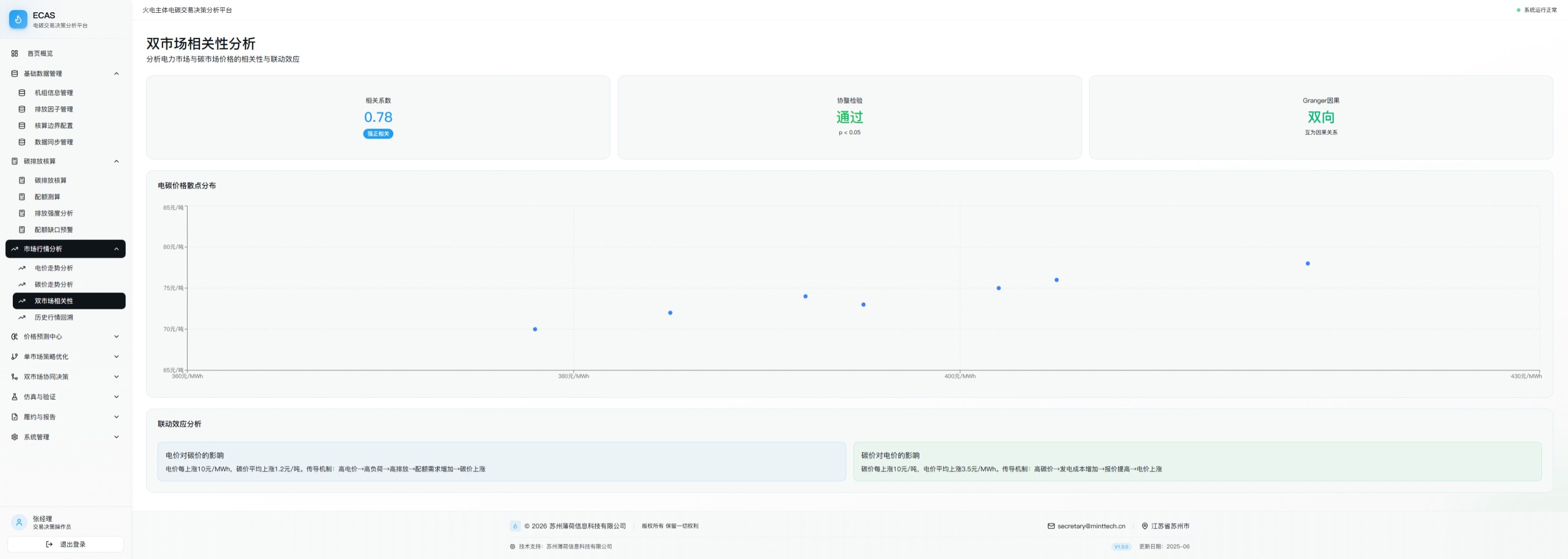 火电主体参与电碳交易市场决策分析平台是为火电企业量身打造的专业化决策分析系统。随着我国电力现货市场全面转入正式运行、全国碳排放权交易市场规模持续扩大,火电企业作为电力供应核心主体与碳市场重点管控单位,面临电碳双市场协同决策的核心痛点。