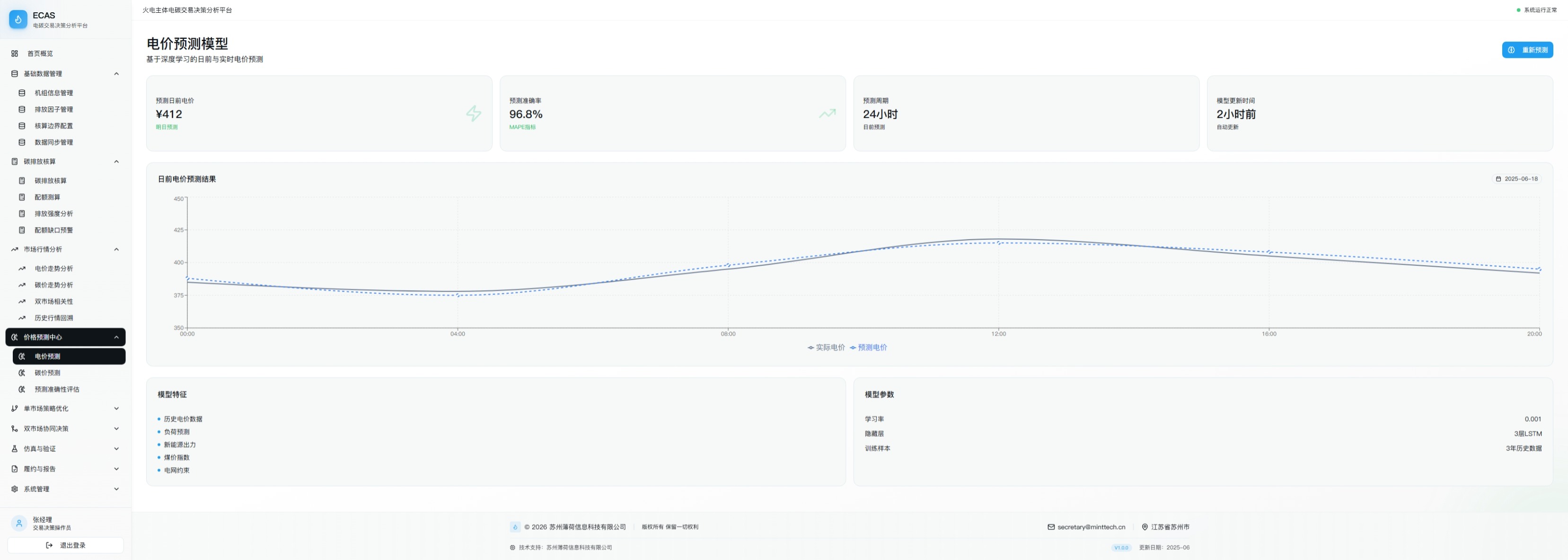 集成多种预测算法,提供碳价、电价预测服务,支持历史回测与预测精度评估