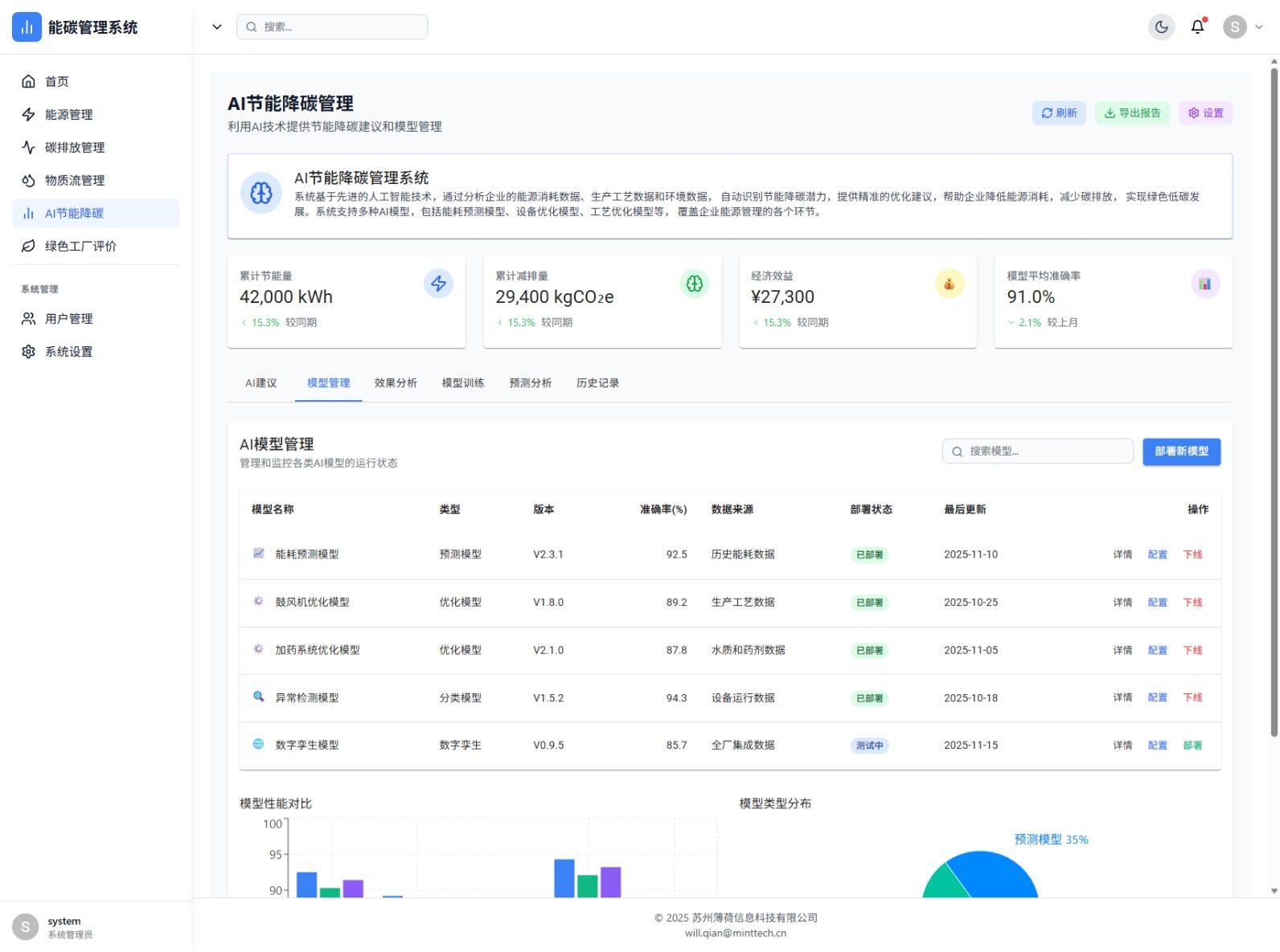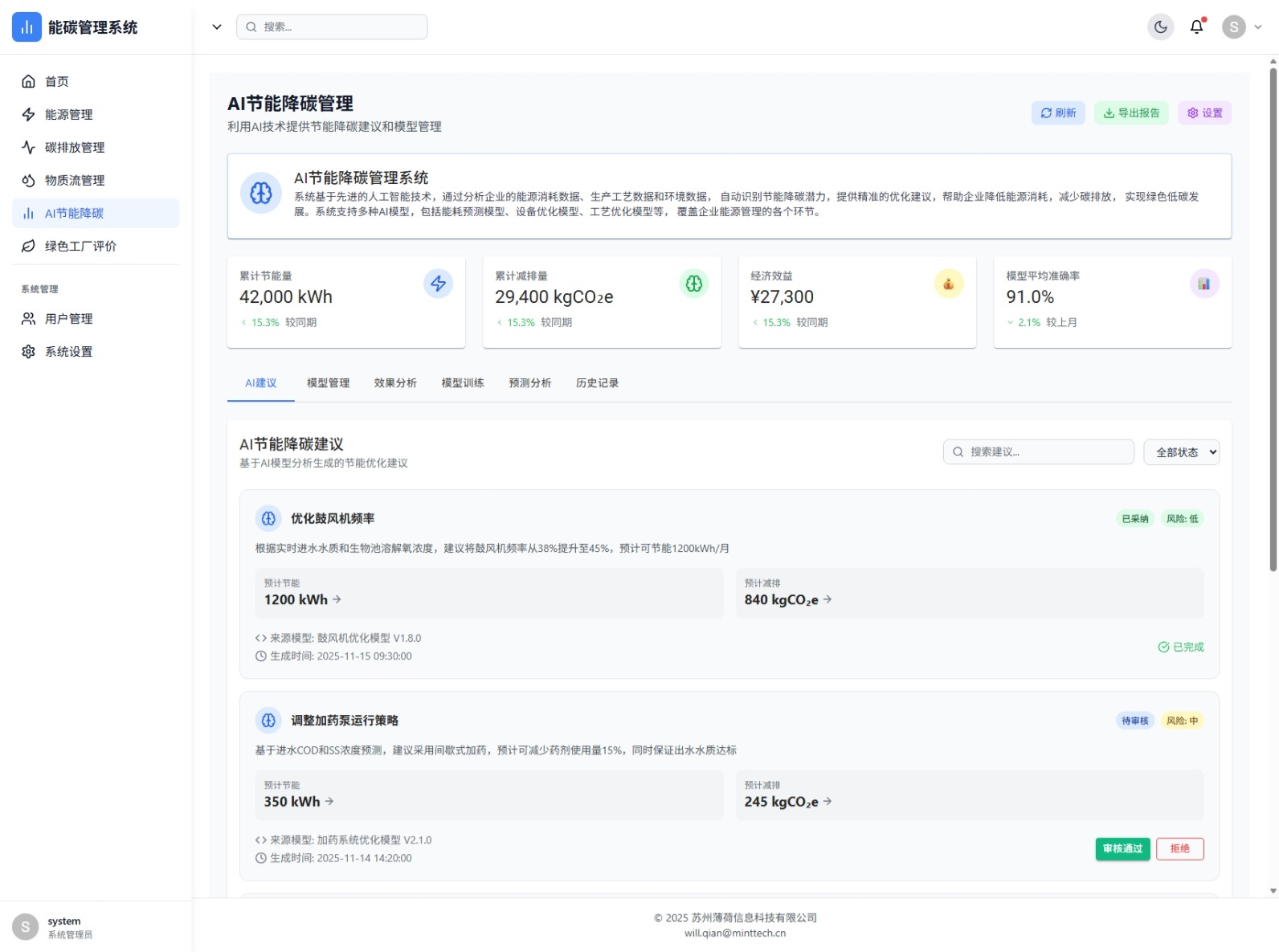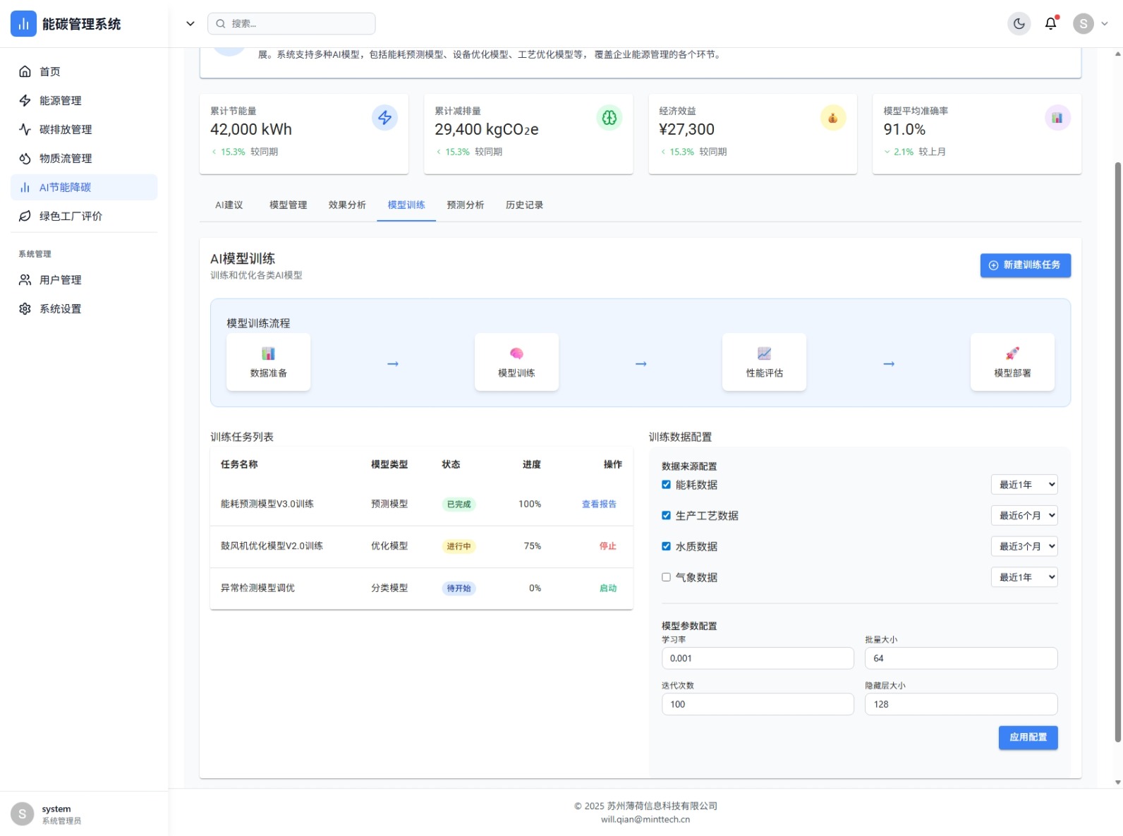 AI智能优化建议、模型管理、模型训练、效果分析,支持能耗预测、设备优化、工艺优化等多类模型